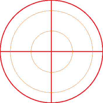 - Map for "illumination of the Moon by Tx beam" or "relative intensity of the reflected power" or "relative intensity of the received moon signal by Rx beam", Tx (blue circle) and Rx (red circle) beam width
