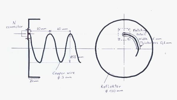 I used a stove-pipe cap with a diameter of 135 mm and copper wire about 2.7 - 3.3 mm in diameter (6 -10 mm^2 earthing wire) is used to wind the helix. Wind some turns around a