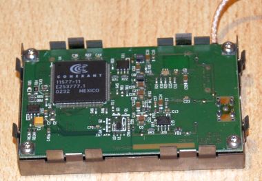 This module has a bandwidth of approx. 500 MHz and it is possible to adjust center frequency between 11.25 and 13.25 GHz. Under the soldering point there is